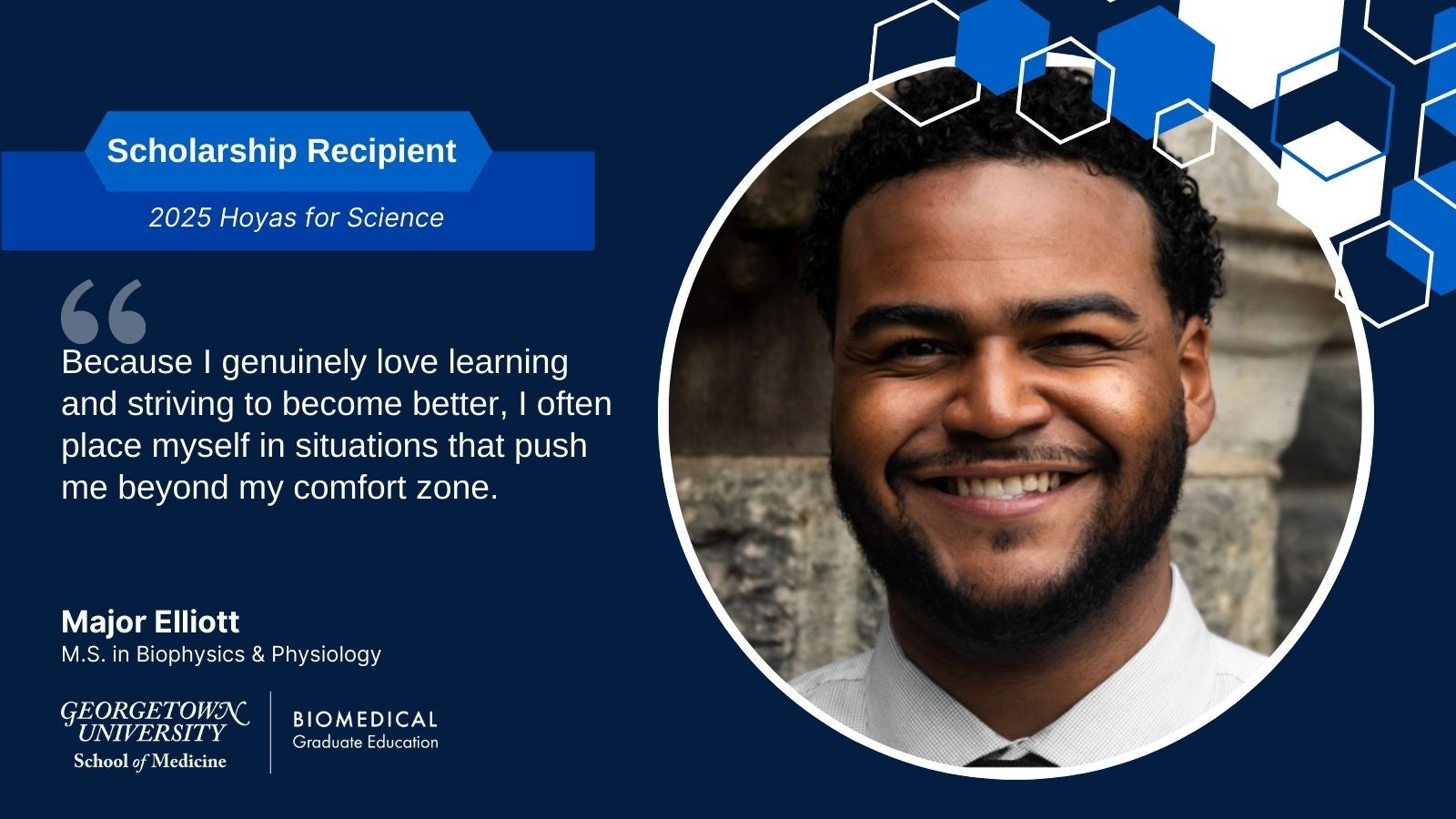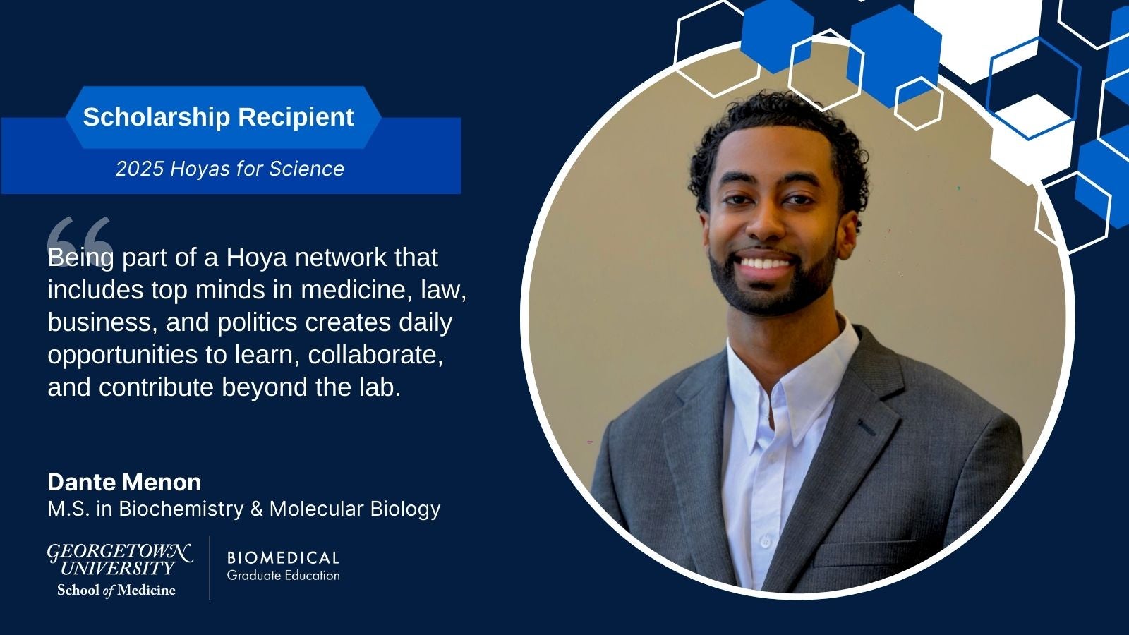 Kevin Williams, an M.S. in Integrative Medicine & Health Sciences, is a 2025 Hoyas for Science recipient.
